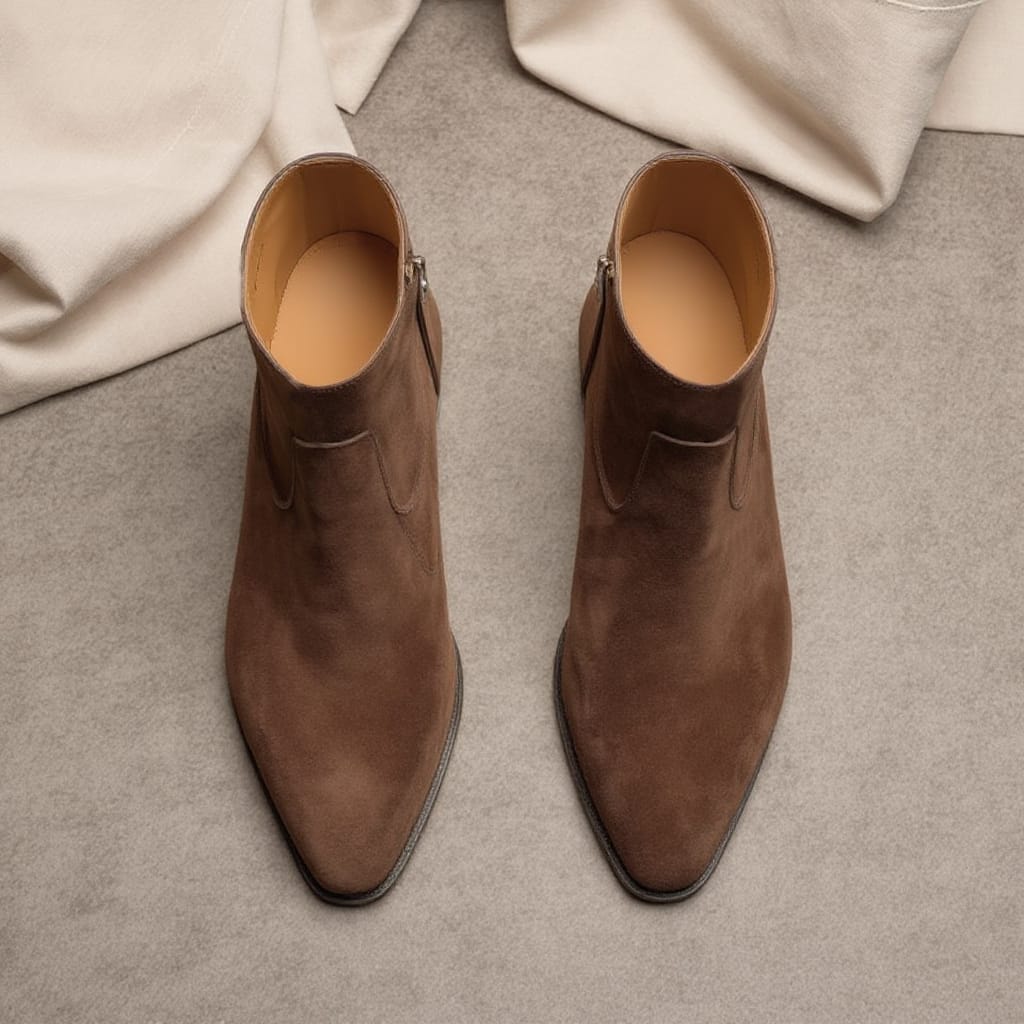 Milano Passo – Burnish Brown Suede Leather Lazzer Slip On Zipper Pointed Boots-MP000100