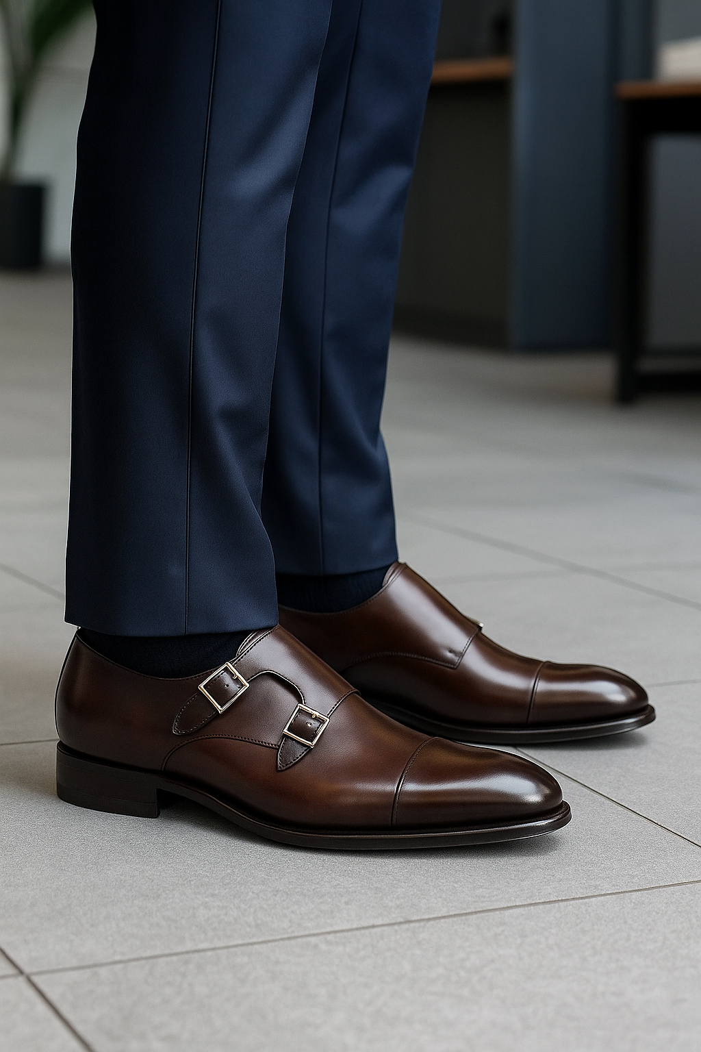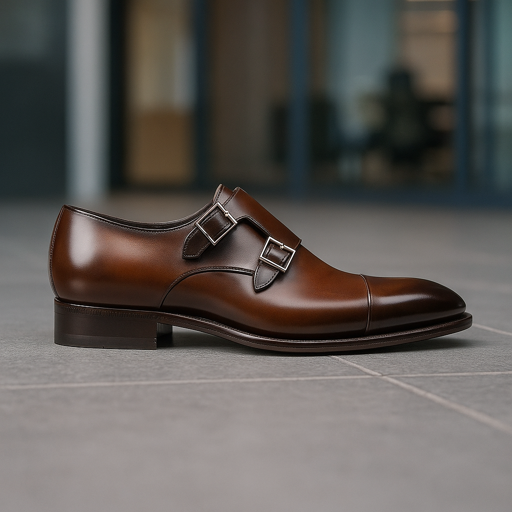 Crafted for the modern gentleman, MilanoPaaso’s double monk strap shoes combine timeless design with refined luxury. Made from premium polished leather, these shoes feature a sleek profile enhanced by elegant metal buckles for a confident, sophisticated look. The soft cushioned insole and durable sole ensure all-day comfort, making them perfect for business wear, formal occasions, and elevated evening style. A true expression of class, precision, and premium craftsmanship.