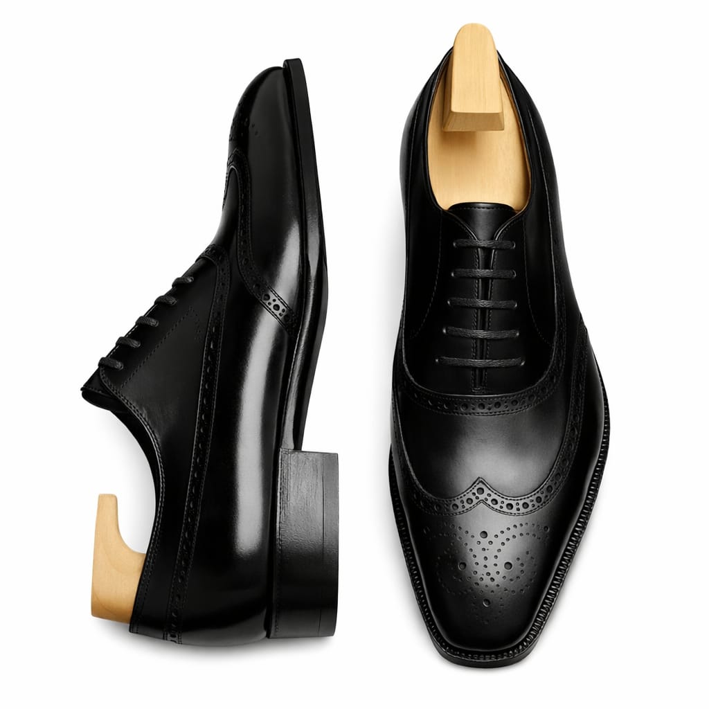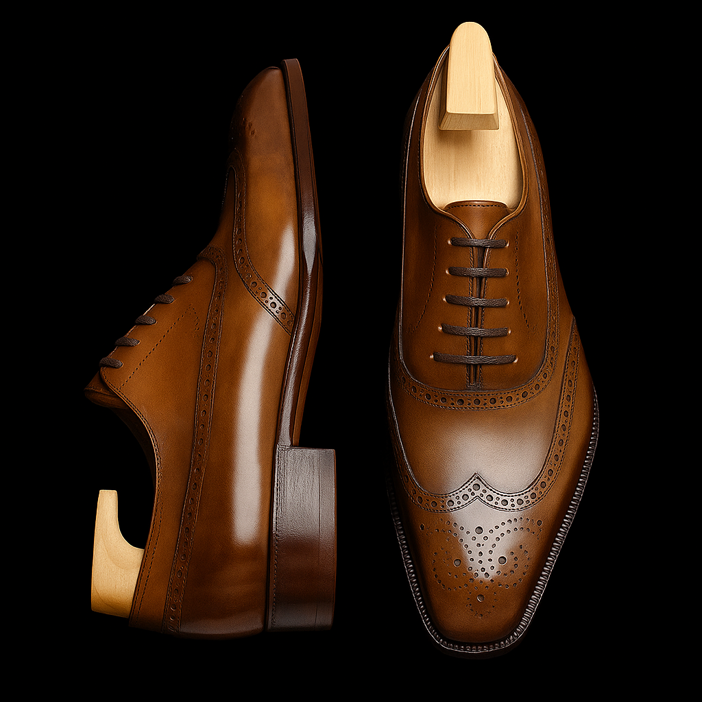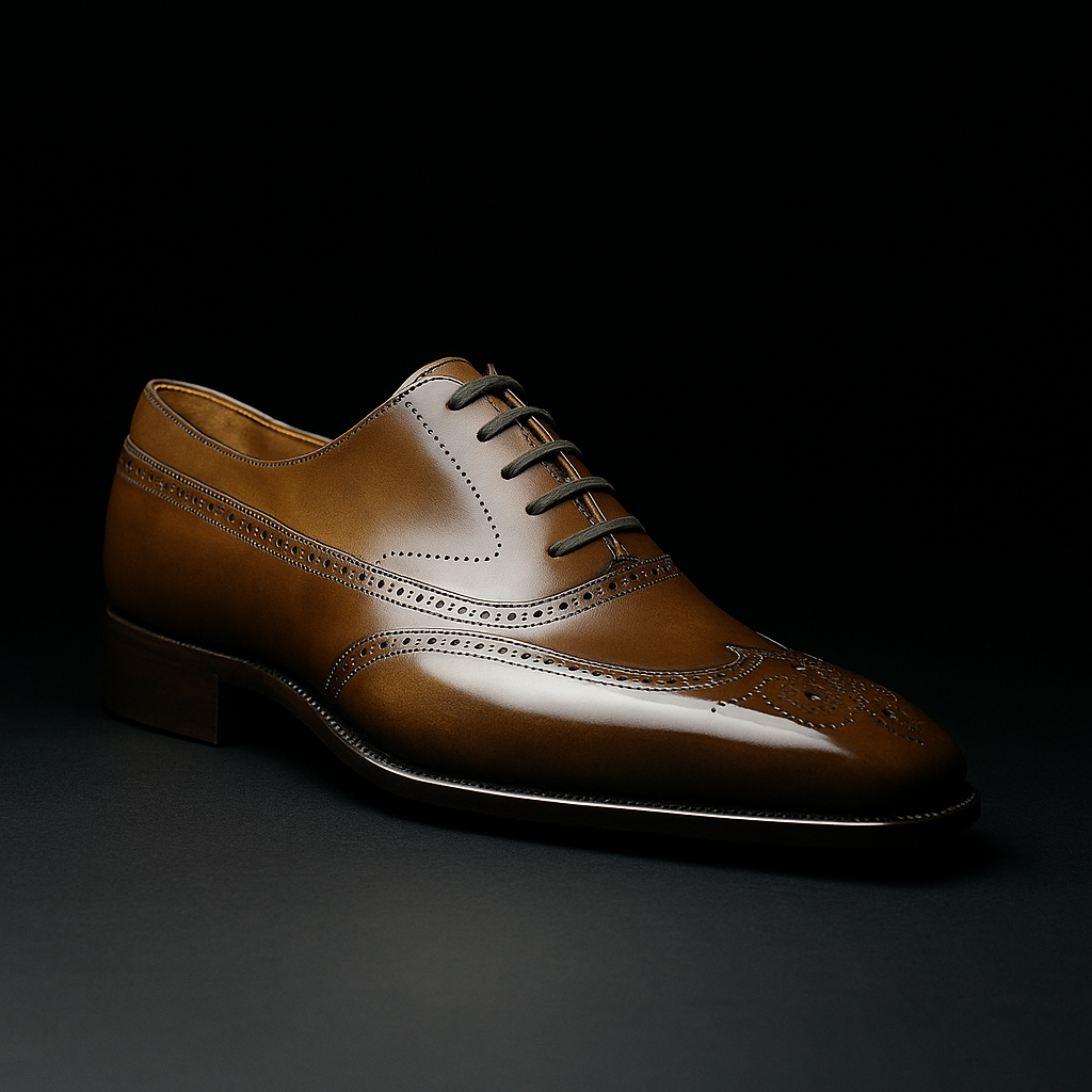 • HuA luxury tan Wingtip Oxford finished with hand-brogued detailing and a deep burnished shine. Bold, royal, and unmistakably premium—this pair brings heritage elegance to modern power dressing. Perfect for weddings, premium business looks, and gentlemen who like standout refinement.
